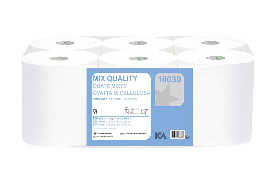 Single ply mix centrefeed towel. Soft and absorbent, it’s ideal for hand drying and wiping and drying tasks in factory, kitchen and washroom environments. It can be used on its own for portable cleaning or with dispensers. The centrefeed design allows a more economical and cost-efficient usage, by reducing the number of sheets used.